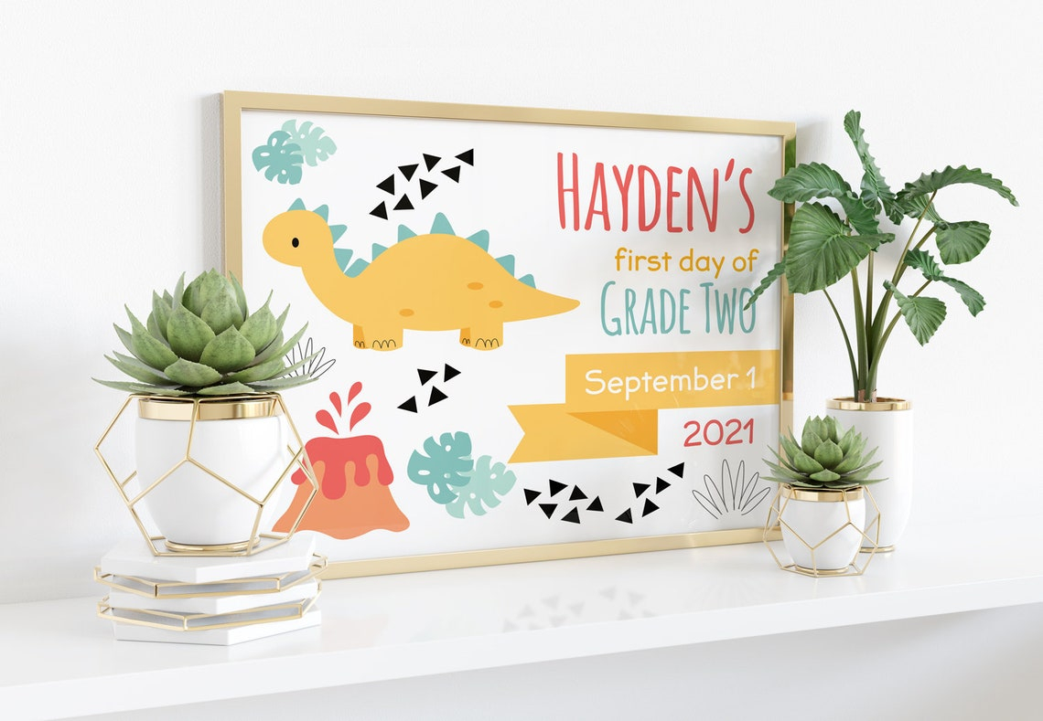 First Day Of School Stegasaurus Printable Sign - Your Day Register child indicator vocabulary appears like direct sunlight soaring over the horizon.