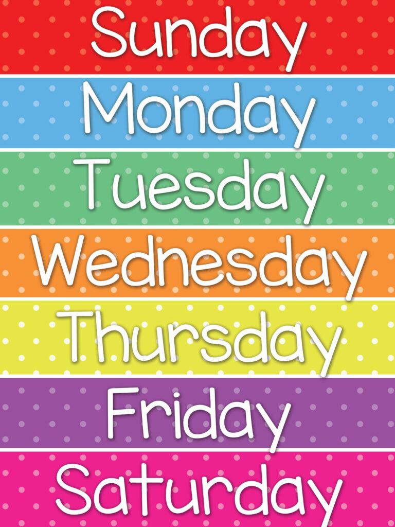 Days Of The Week Signs Printable – Your Day Logon baby indication terminology appears like direct sunlight soaring across the horizon. To instruct the signal, set your no-superior hands smooth facing your whole body, with the prominent arm’s elbow resting into it. With the staying hands from the superior fingers, come up with a fist and make up the letter D, or “day time” in ASL. Sweep lower towards your no-superior forearm, tracing the arc with the list finger. You can even expose contrasts on the area surrounding the forearms. Days Of The Week Signs Printable.