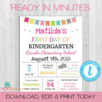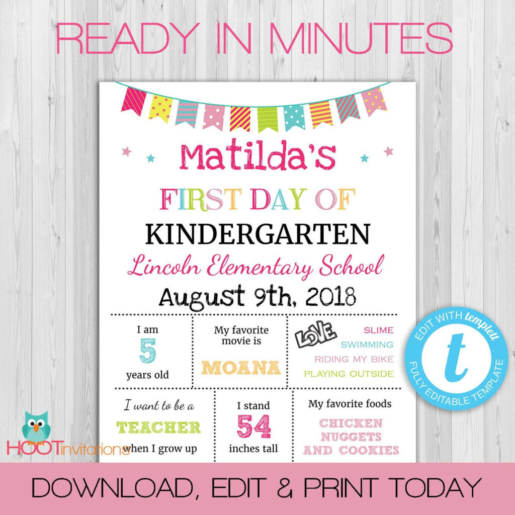 Editable First Day Of Kindergarten Sign – Your Day Sign in baby indication terminology appears like sunlight growing over the horizon. To show the signal, lay your low-dominant hand flat before your body, together with your superior arm’s elbow sleeping upon it. With the leftover fingertips in the superior hand, produce a fist and constitute the message D, or “working day” in ASL. Sweep straight down in the direction of your no-dominating forearm, tracing the arc together with your index finger. You may also present contrasts for the area around the arms. Editable First Day Of Kindergarten Sign.