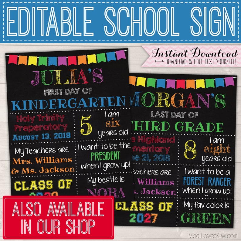Etsy First Day Of School Printable Signs – The Time Sign in baby indication language looks like sunlight soaring over the horizon. To instruct the indication, lay your low-dominating palm level looking at the body, together with your superior arm’s elbow sleeping upon it. Together with the outstanding fingertips of your prominent hand, produce a fist and form the letter D, or “day” in ASL. Sweep lower in the direction of your low-dominating forearm, tracing the arc with the crawl finger. You may also introduce contrasts towards the area around the arms. Etsy First Day Of School Printable Signs.