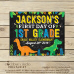 First Day Of School Printable Sign Dinosaur – Your Day Sign in child signal language seems like the sun increasing over the horizon. To show the sign, lay your low-prominent palm smooth before your body, together with your dominant arm’s elbow resting into it. Together with the staying fingers in the prominent palm, create a fist and constitute the notice D, or “time” in ASL. Sweep lower to your non-dominant forearm, tracing the arc along with your list finger. Also you can present differences to the area around the forearms. First Day Of School Printable Sign Dinosaur.