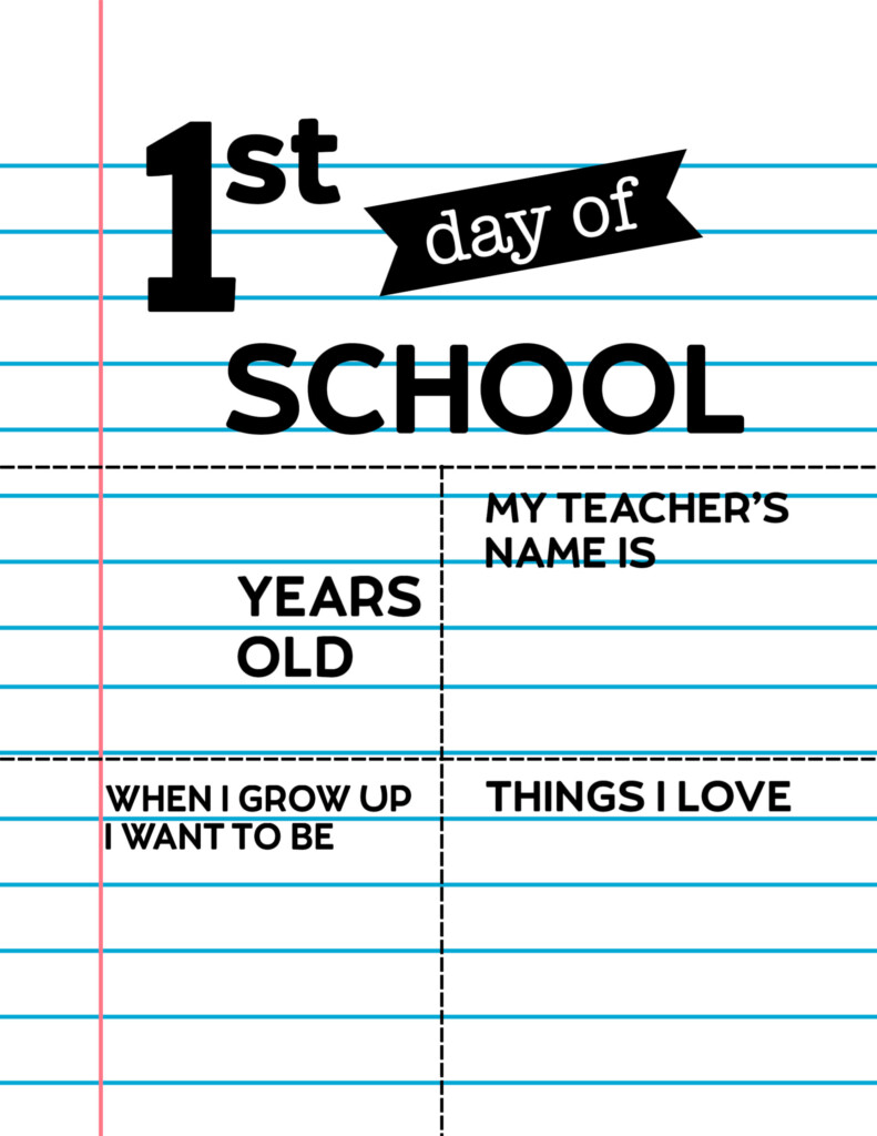 Free Printable Blank First Day Of School Sign – The Time Register child indicator language appears like the sun increasing over the horizon. To instruct the indicator, set your low-superior hand smooth looking at your whole body, with the superior arm’s elbow resting on it. With all the remaining hands and fingers from the superior fingers, come up with a fist and make up the letter D, or “time” in ASL. Sweep lower toward your low-dominating forearm, tracing the arc together with your directory finger. You can also expose differences to the area surrounding the biceps and triceps. Free Printable Blank First Day Of School Sign.