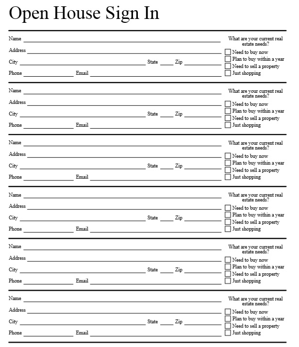 10 Free Sample Open House Sign In Sheet Templates Printable Samples