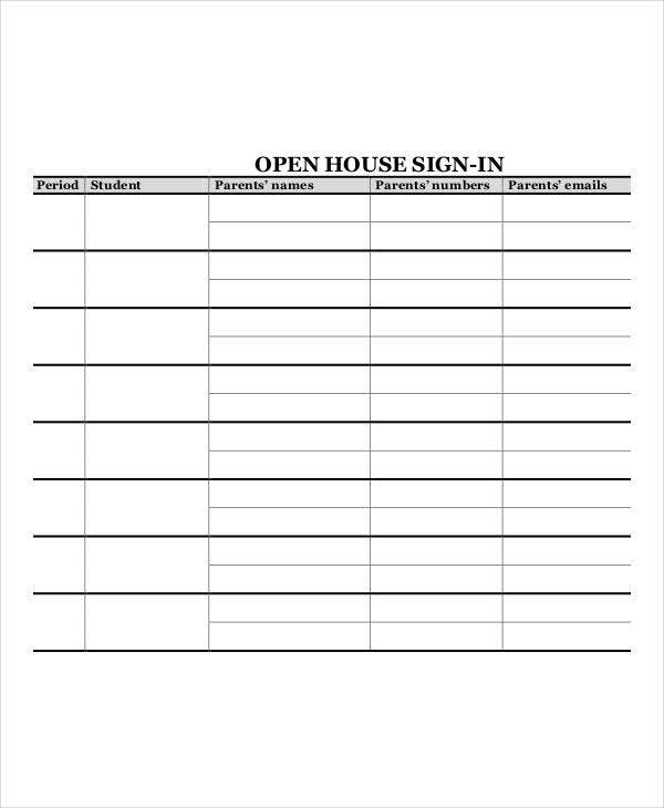 Open House Sign In Sheet Templates 12 Free PDF Documents Download
