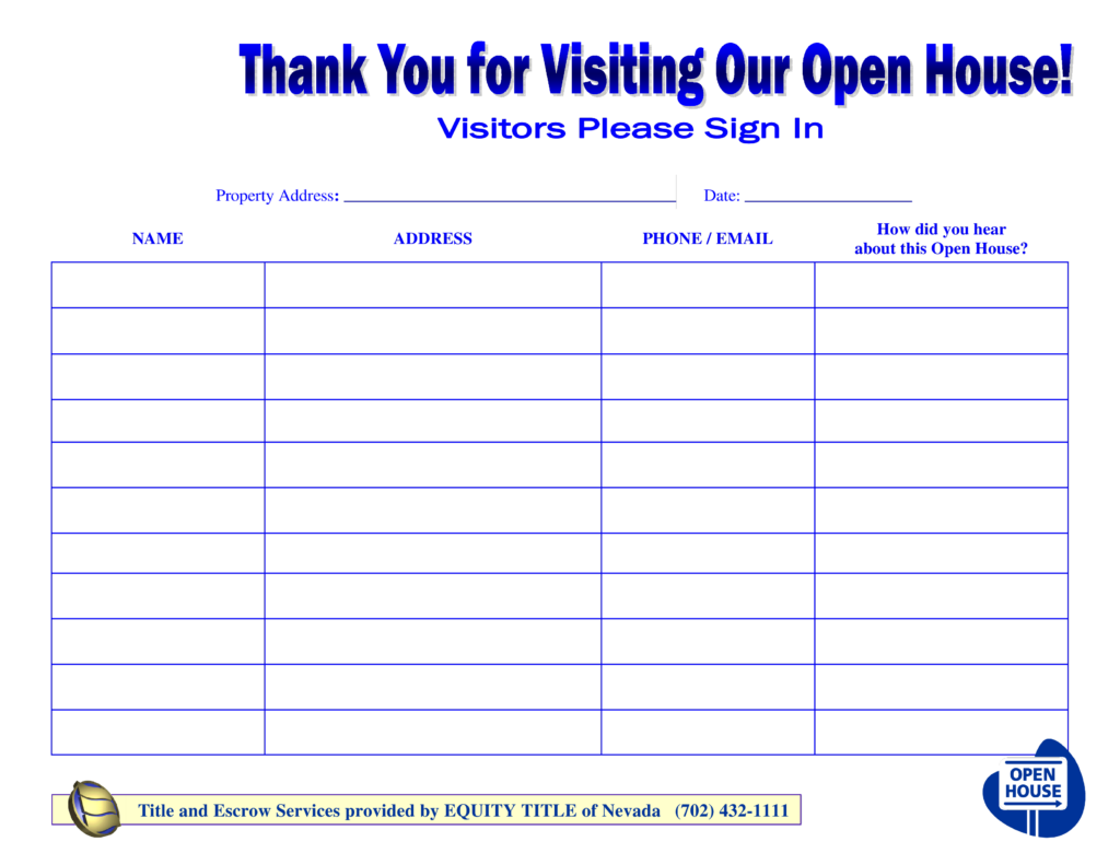 Gallery of Free Printable Open House Sign In Sheet For School