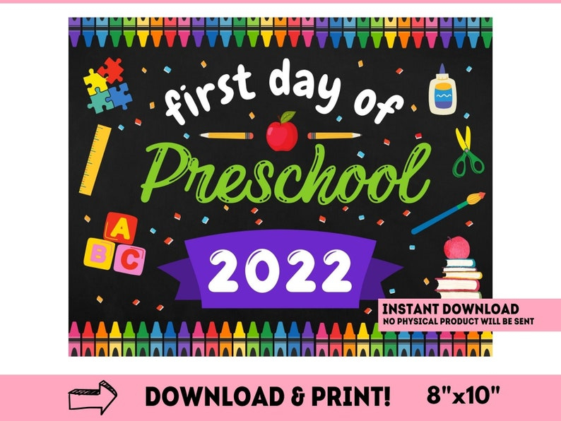 Printable First Day Of Preschool Sign 2022 – The Morning Logon newborn sign words appears to be direct sunlight soaring within the horizon. To instruct the indicator, place your non-dominating palm flat before your body, with your prominent arm’s elbow relaxing into it. With the outstanding hands in the prominent hands, create a fist and make up the note D, or “day time” in ASL. Sweep downward to your non-prominent forearm, tracing the arc along with your list finger. You may also introduce contrasts for the area around the forearms. Printable First Day Of Preschool Sign 2022.