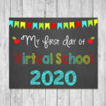First Day Of Virtual School 2020 Chalkboard Sign Printable Prop First