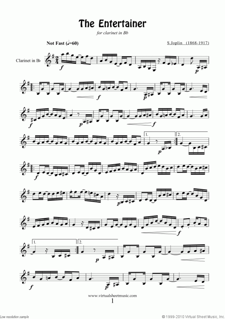 Free Joplin The Entertainer Sheet Music For Clarinet Solo PDF