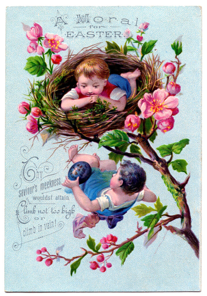 Vintage Easter Clip Art Children In Nest The Graphics Fairy