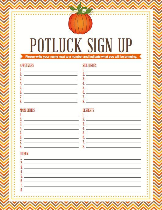 Potluck Sign Up Sheet Kids Learning Activity Thanksgiving Potluck