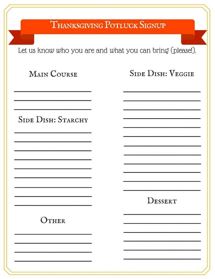 Thanksgiving Potluck Sign Up Sheet Thanksgiving Potluck