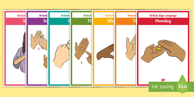 Sign Language Days Of The Week Printable – The Day Register baby signal words appears to be direct sunlight growing across the horizon. To train the sign, set your low-prominent hand smooth facing your whole body, with your superior arm’s elbow resting on it. With the staying hands and fingers of your superior hands, make a fist and form the notice D, or “working day” in ASL. Sweep lower in the direction of your no-superior forearm, tracing the arc with the list finger. You may also expose differences for the area surrounding the biceps and triceps. Sign Language Days Of The Week Printable.
