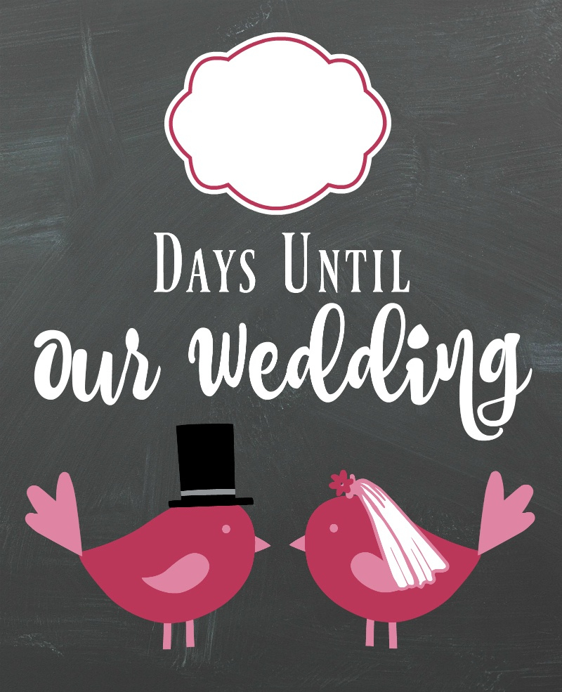 Wedding Countdown Sign Free PrintableAs well as the standard wedding ceremony indication, you may select to obtain a Chalkboard signal or possibly a Huge-looking glass wedding signal. You may even get yourself a Neon Brought indicator! No matter which kind you select, you’ll need a indicator that makes an announcement concerning your wedding. Allow me to share some ways to individualize your wedding event indication. With a little luck one of those could be the perfect selection for your wedding! Here are some tips to assist you to get the best choice: Wedding Countdown Sign Free Printable.