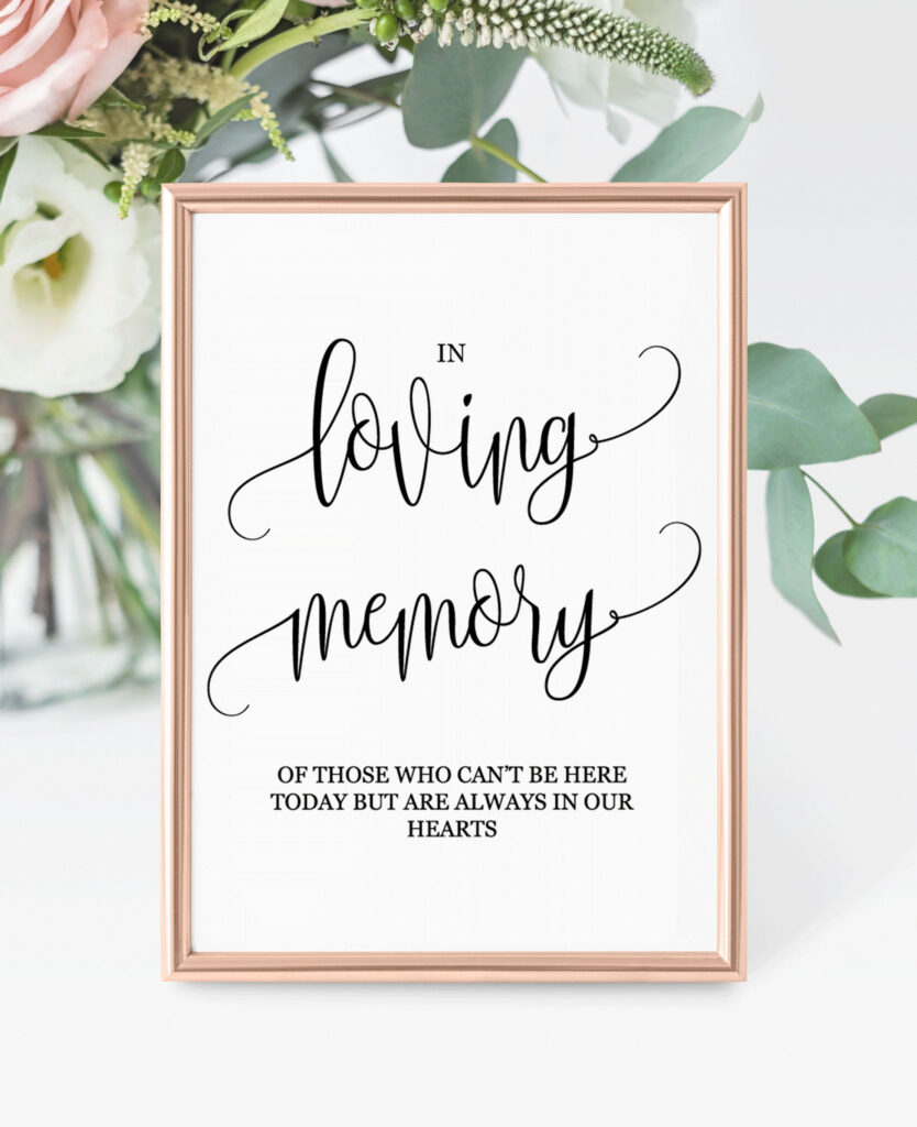 Wedding Memorial Table Sign Printable – Besides the standard wedding ceremony sign, you can pick to obtain a Chalkboard signal or perhaps a Sizeable-looking glass wedding ceremony indication. You may also obtain a Neon Directed sign! Irrespective of which kind you choose, you’ll desire a sign that creates a statement regarding your wedding. Listed here are some methods to modify your wedding signal. Hopefully one of these could be the perfect selection for your wedding event! Follow this advice to help you make the best choice: Wedding Memorial Table Sign Printable.
